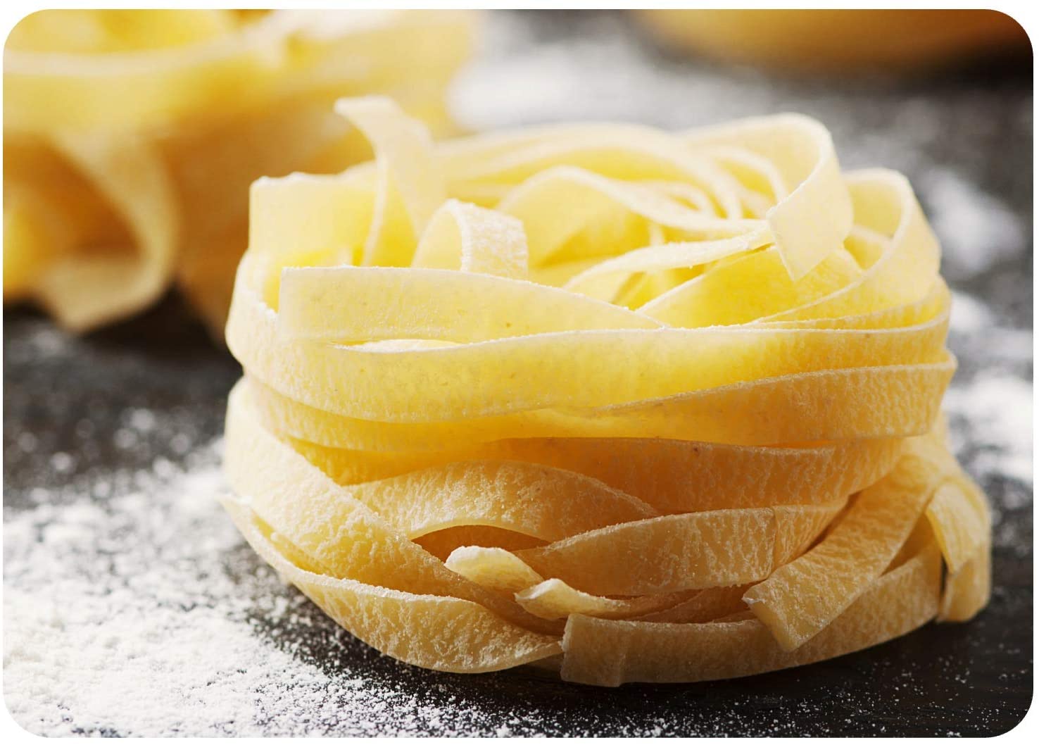伝統的にボロネーゼソースとあわせる事で知られるタリアテッレは、伊・ボローニャで誕生したパスタ。標準茹で時間は約2分です。日本では フィットチーネ という名称がしっくりくるかもしれません。テフロンダイス製法で作られた スパゲッティ と比べてソースを絡めとる力が強いため、トマトや肉系のソースとの相性が良いとされています。